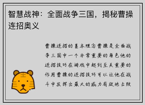 魏盾曹操带藤甲如何加点 引言: 魏盾曹操是《三国演义》中的重要人物,他以其智勇双全、军事才华出众而广为人知。在战场上,曹操常常带领着自己的部队使用藤甲,这种轻便而坚固的装备为曹操带来了巨大的优势。本文将从随机的8个方面对魏盾曹操如何加点藤甲进行详细的阐述,希望能够为读者提供一些有关藤甲的知识和加点技...